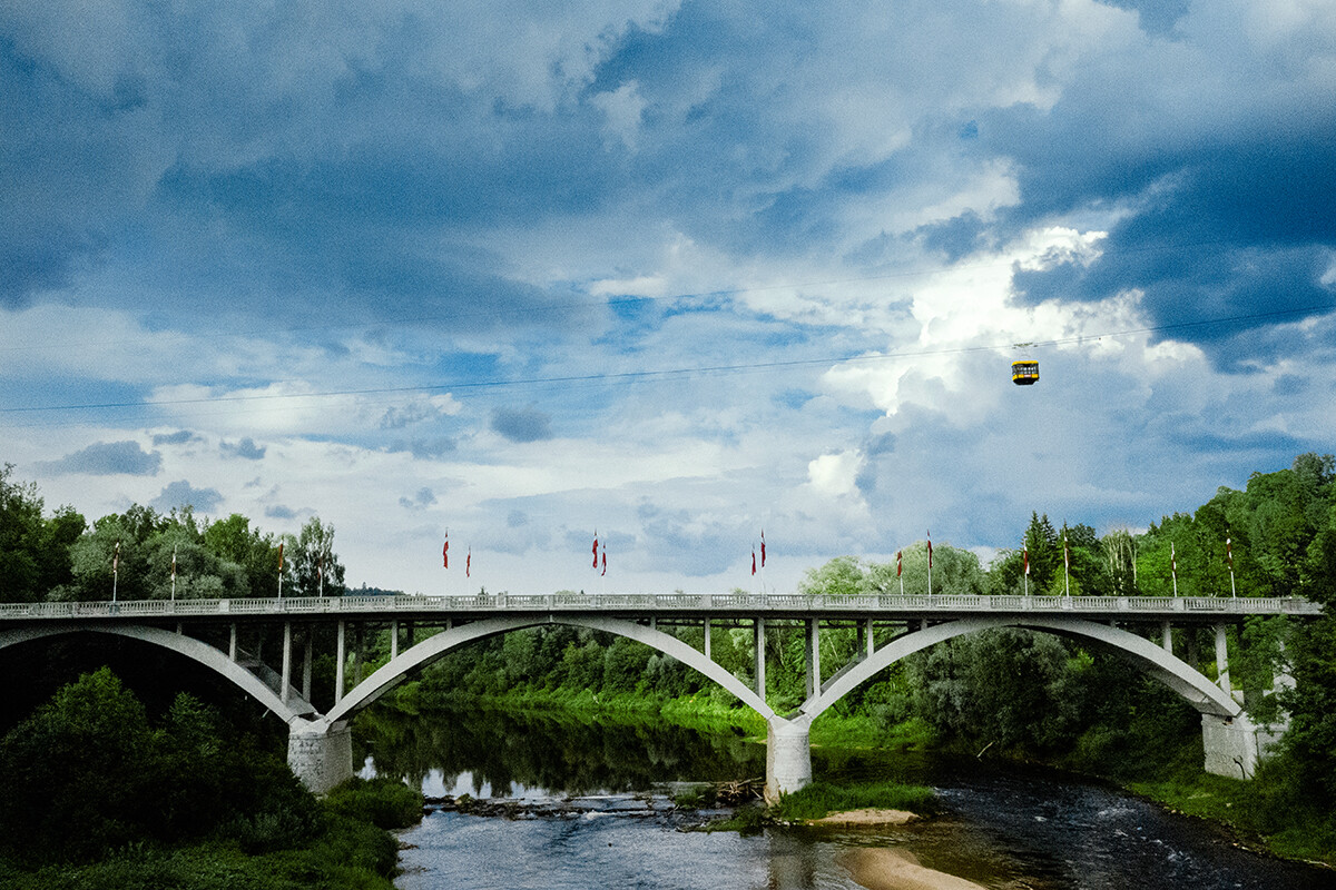 The bridge, built in 1979, offers a fabulous view of the Devil's Cliffs and the Gauja River.